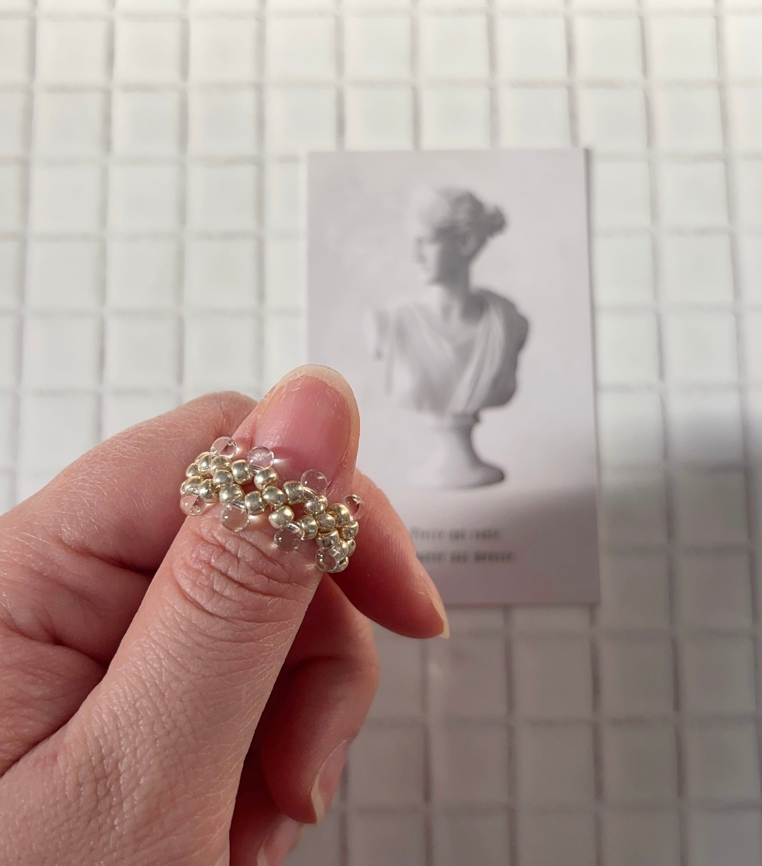 淡色 個性的 指輪 ビーズリング ドロップビーズ クリアビーズ ビーズアクセサリー