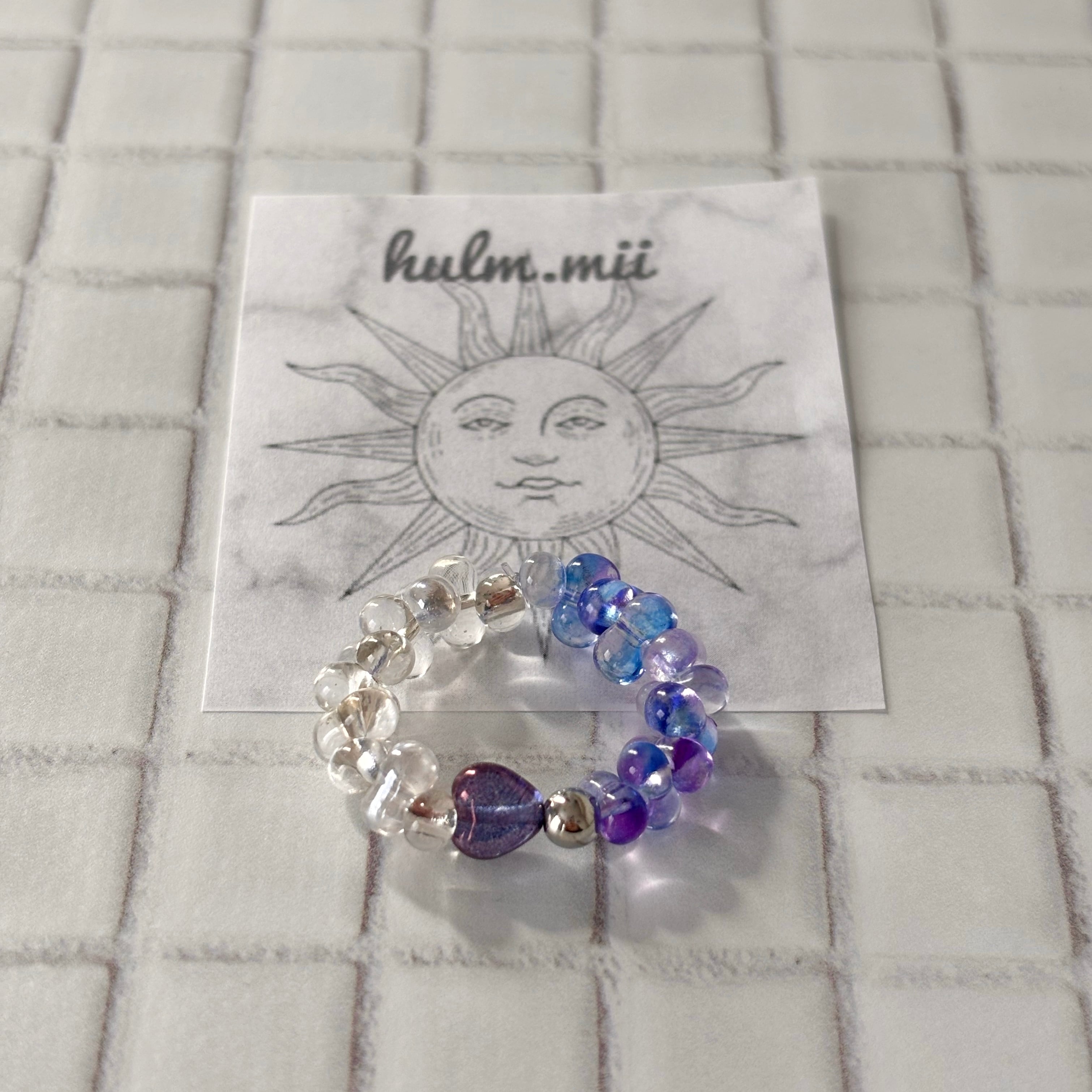 コロンとした Heart beads Ring clear× purple
