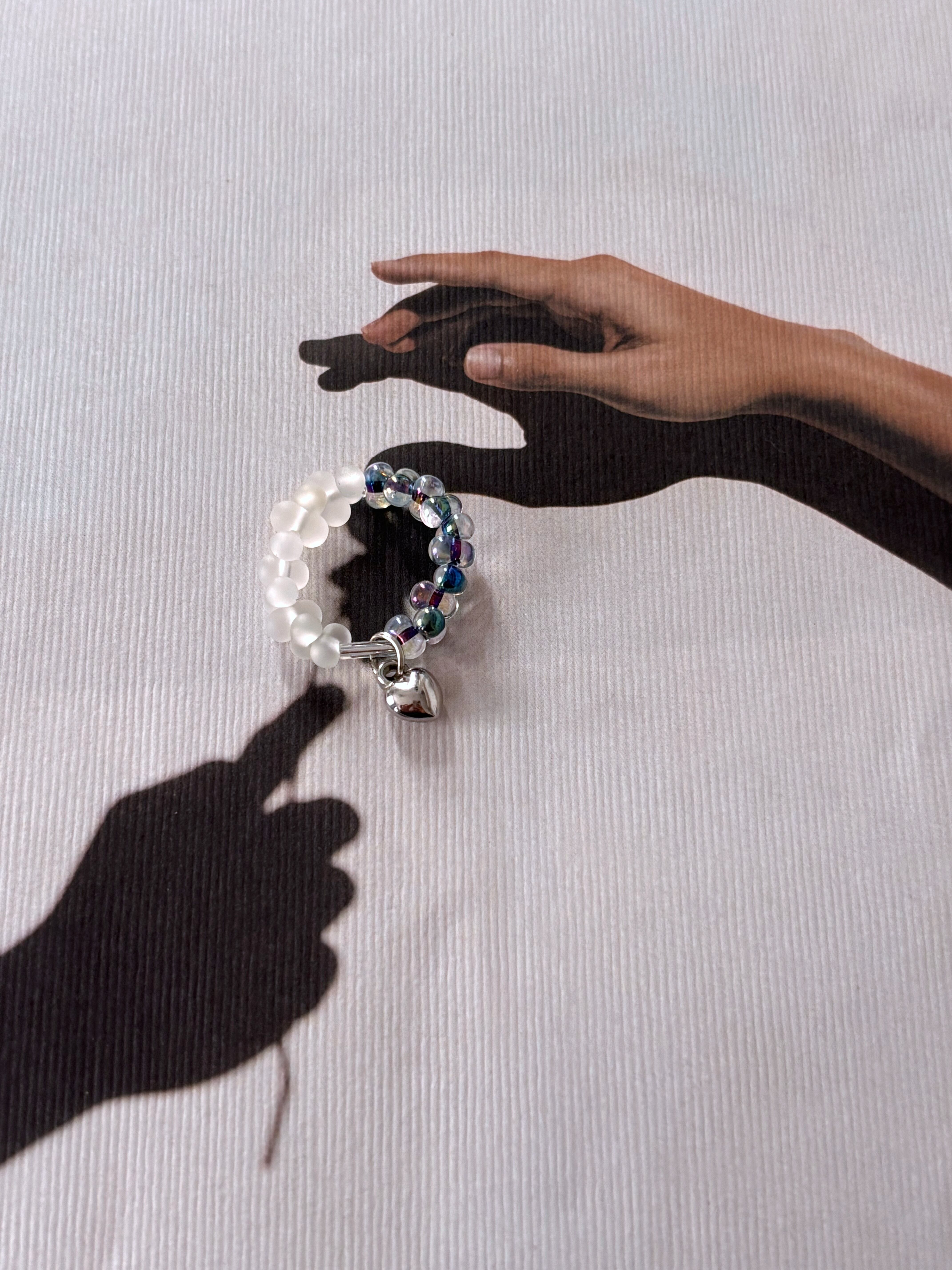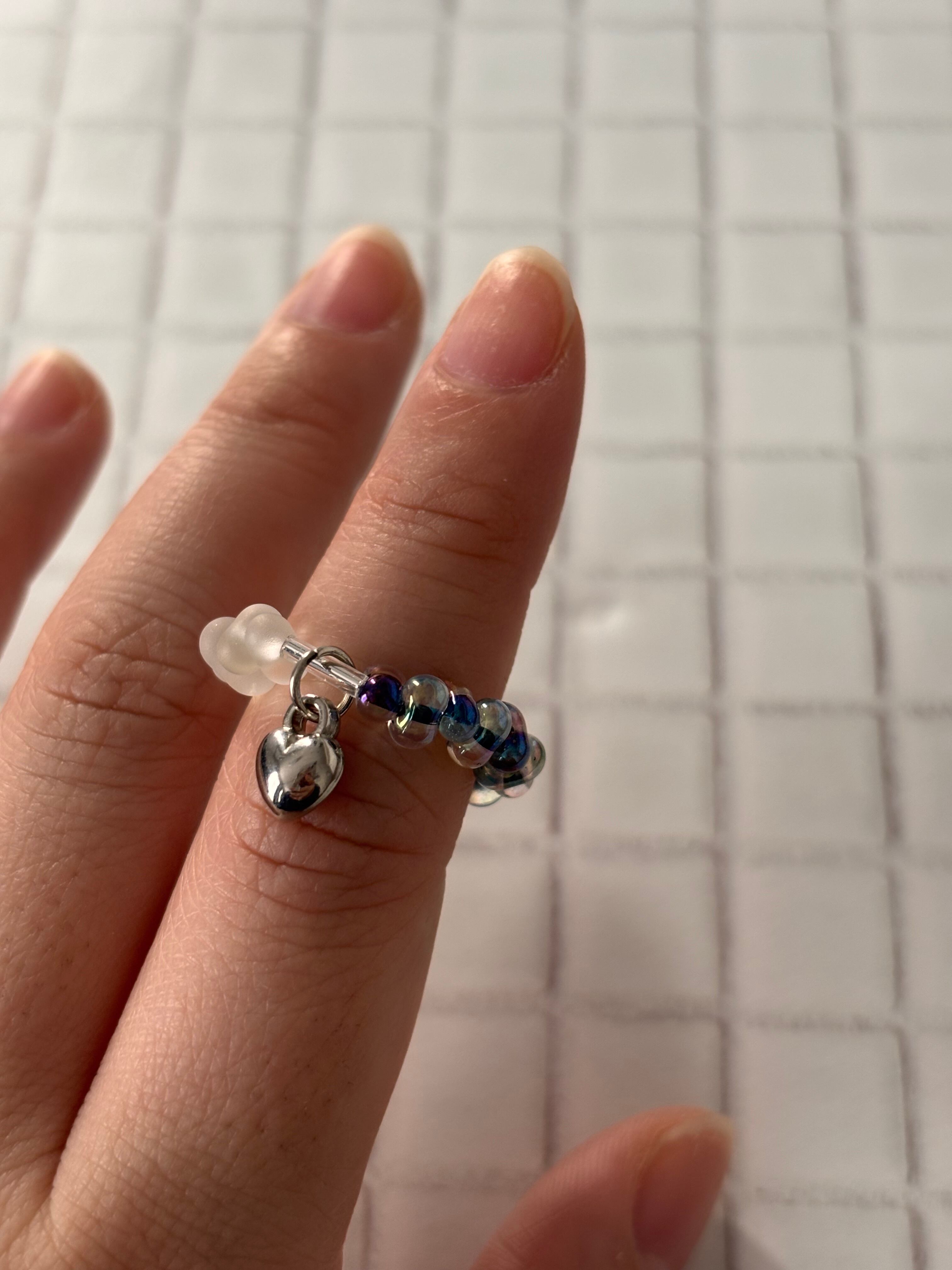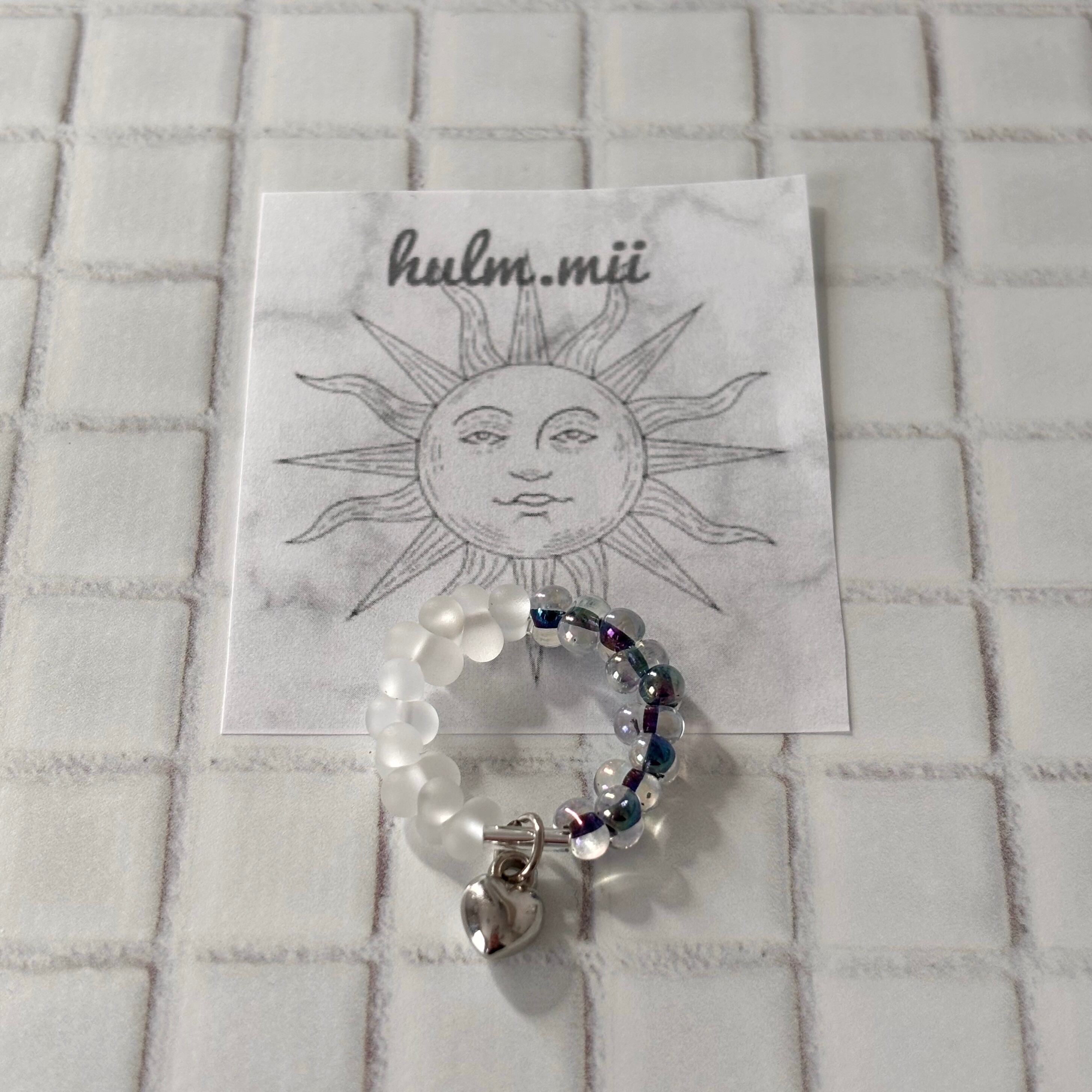 幻想的 キラキラ 透明感 ファルファーレビーズ 淡色 個性的 指輪 ビーズリング ドロップビーズ クリアビーズ ビーズアクセサリー ハートリング ハートチャーム
